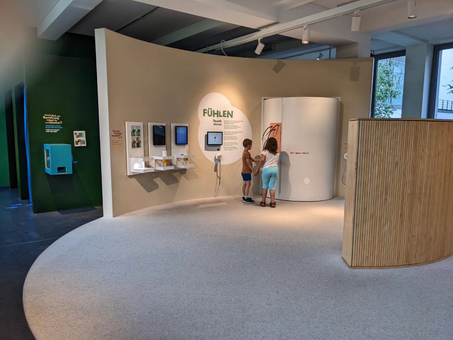 Po příjezdu a ubytování jsme vyrazili směr Německé muzeum hygieny (koho by zajímalo, odkaz na náš hotel zde). Protože se blížil konec otevírací doby, zamířili jsme rovnou do dětské části muzea, kde děti postupě prozkoumaly všechny lidské smysly – vše maximálě inteaktivně a zábavně. V každé sekci je úmístěný exponát daného smyslu, tak, aby i děti pochopily o jaký smysl jde. Moc jsme ocenily všudy přítomné popisky ve třech jazycích – aj, nj i čj !